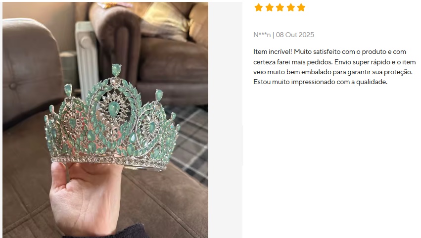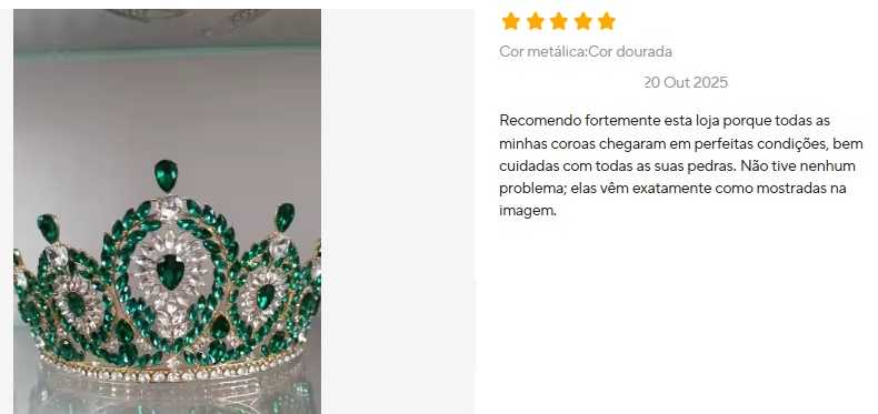 Material de Alta Qualidade: Feita com cristais vibrantes que fazem você parecer uma verdadeira joia (sem precisar vender um rim!). É resistente e ideal para quem ama ser o centro das atenções.