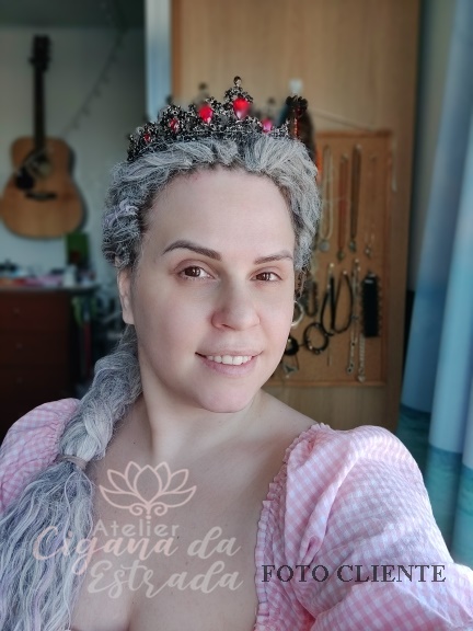 Perfeita para complementar trajes que exigem presença e significado, a Tiara Pombagira preta e vermelha é versátil e facilmente incorporada em eventos culturais, festas temáticas e práticas espirituais. Seu design exclusivo destaca-se pela elegância e pelo simbolismo, conferindo à pessoa que a usa uma aura de confiança e poder.